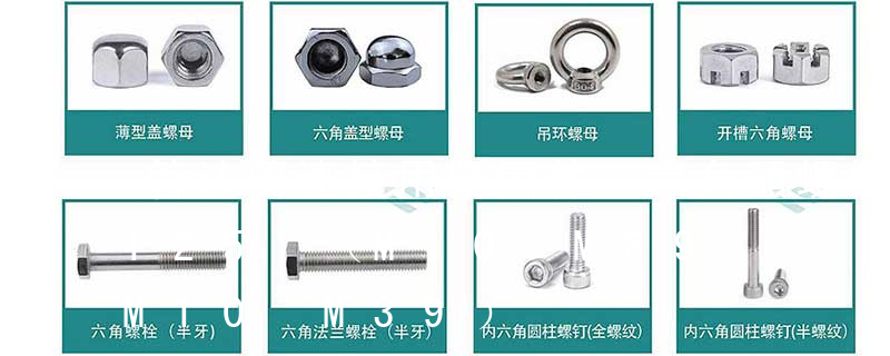 螺栓有:1、方頭螺栓,2、半圓頭方頸螺栓,3、十字槽盤頭螺釘,4、內(nèi)六角沉頭螺釘,5、方螺母C級(jí),6、蝶形螺母,7、六角頭螺栓,8、十字槽盤頭自攻螺釘。大小有M18、M6、M8、M16、M10、M12、M14、M20等型號(hào)。通常用